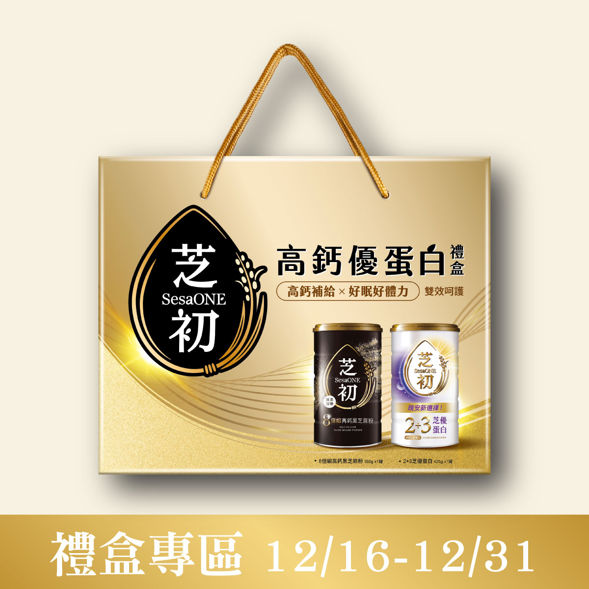 內容物:高鈣黑芝麻粉罐裝380g + 2+3芝優蛋白425g